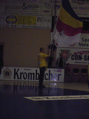 noch eine preisfrage. welches he-mitglied zieht mit der größten fahne der liga durch die lande? zuletzt gesichtet in der dutenhofener sporthalle.