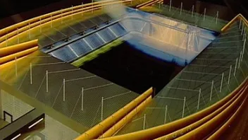 Super-Dome oder Luftschloss?Bis zu 20.000 Besucher soll sie fassen, die künftige Spielstätte der Sportfreunde Siegen. Nachts soll sie weithin sichtbar leuchten, so wie die Münchner Allianz-Arena. Mehrere Parkhäuser sollen dazu gehören, ein Hotel mit 150 Zimmern, ein Erlebnispark für Kinder. 300 neue Arbeitsplätze sollen entstehen. 70 Millionen Euro will sich ein englischer Investor diese Super-Arena kosten lassen. Seinen Namen möchte er noch nicht genannt wissen.