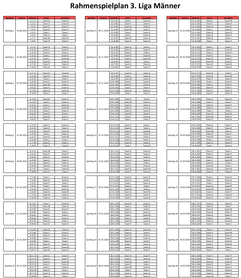das ist wohl war, geht uns grade genau so. wir sollen möglichst bald alle Mannschaften von den Regionsklassen bis in die Regionalliga einstellen können das aber nicht weil die 3. Liga halt noch fehlt. und solange die Termin nicht fix sind geht da leider mal garnichts.