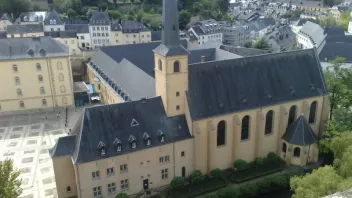 Was man sieht, ist der Blick vom Bockfelsen (oder gar aus den Kasematten) auf den Luxemburger Stadtteil Grond mit der Neumunsterabtei im Vordergrund, ehemaliges Kloster, dann bis in die 80'ger Gefängnis, heute Kulturzentrum mit Cafés, Konzerten, Künstlern. Rechts im Hintergrund noch erkennbar die Vauban-Bastion vom Heelig-Geescht-Plateau.