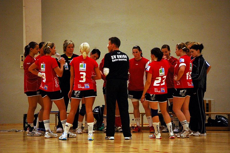 Nicht desto trotz legten die Wildcats einen Blitzstart hin und zeigten in den ersten Minuten des Spieles eine überzeugende Leistung. Bei den Gastgebern dagegen kam kein ordentlicher Spielaufbau zustande, aus diesem Grund beorderte Oleg Goloub seine Spielerinnen bereits nach sechs Minuten (1:6) zur Auszeit an die Seitenlinie. Mit dieser Auszeit riss dann der rote Faden bei den Wildcats, den man auch später im Spiel nie wieder fand. Vor allem die Defensivarbeit bei den Saalestädterinnen wurde nun häufig vernachlässigt. Immer wieder kamen Spielerinnen der Rostocker Dolphins frei vor dem Tor zum Wurf, welche die Chancen nutzten und den Spielstand zu ihren Gunsten korrigierten. Die 19 jährige Saskia Weisheitel bereitete den Wildcats die meisten Sorgen in der Abwehr, immer wieder riss sie Lücken in die Abwehr des SV UNION. Auch das Wechselspiel zwischen der Abwehr von Susanne Kordt und im Angriff Katrin Horke zeichnete sich äußerst effektiv für die Gastgeber aus. Im Angriff der Wildcats war es Sophia Eisenkolb die die Wildcats mit ihren Rückraumtoren im Spiel hielt. Nicht desto Trotz musste Halle-Neustadt dann in der 21. Spielminuten den Ausgleichstreffer des Rostocker HC hinnehmem. Ohne eine etatmäßige Kreisspielerin beim SV UNION waren die Möglichkeiten einer Spielentwicklung äußerst begrenzt.Im zweiten Spielabschnitt stand die Abwehr des Vorjahresdritten wesentlich besser als in der ersten Hälfte. Mit einer Julia Plöger im Rücken der Abwehr, hatte man nun einen sicheren Rückenhalt. War es in der ersten Halbzeit die Abwehr die Arne Kühr Sorgen bereitete, war es in den zweiten dreißig Minuten der Angriff der Entwicklungspotenzial aufzeigte. Siebenmeterchancen sowie Würfe frei vor der stark haltenden Torfrau Antje Lenz wurden vergeben. Der SV UNION verpasste in dieser Phase, das Spiel zu drehen und geriet mit 20:16 immer mehr in Rückstand. Die Wildcats kämpften verbissen um die Punkte an die Saale mit zunehmen und kamen in der 44. Minute nochmals auf 20:19 heran. Es fehlten nun aber die letzten Kraftreserven um das Spiel endgültig noch mal zu drehen. Am Ende versuchte Arne Kühr mit einer offensiven Abwehr das Spiel der Dolphins zu unterbinden. Viele Zeitstrafen auf beiden Seiten brachten aber keine Ruhe ins Spiel und der Rostocker HC sicherte sich damit den 27:25 Heimerfolg. Für den SV UNION Halle-Neustadt war Sophia Eisenkolb mit 7 Toren und Ina Schaarschmidt mit 6 Treffern am erfolgreichsten. Bei den Gastgebern war es Kathrin Horke, welche sich mit 9 Toren an die Spitze der Torschützenliste ihres Vereins setzen konnte.