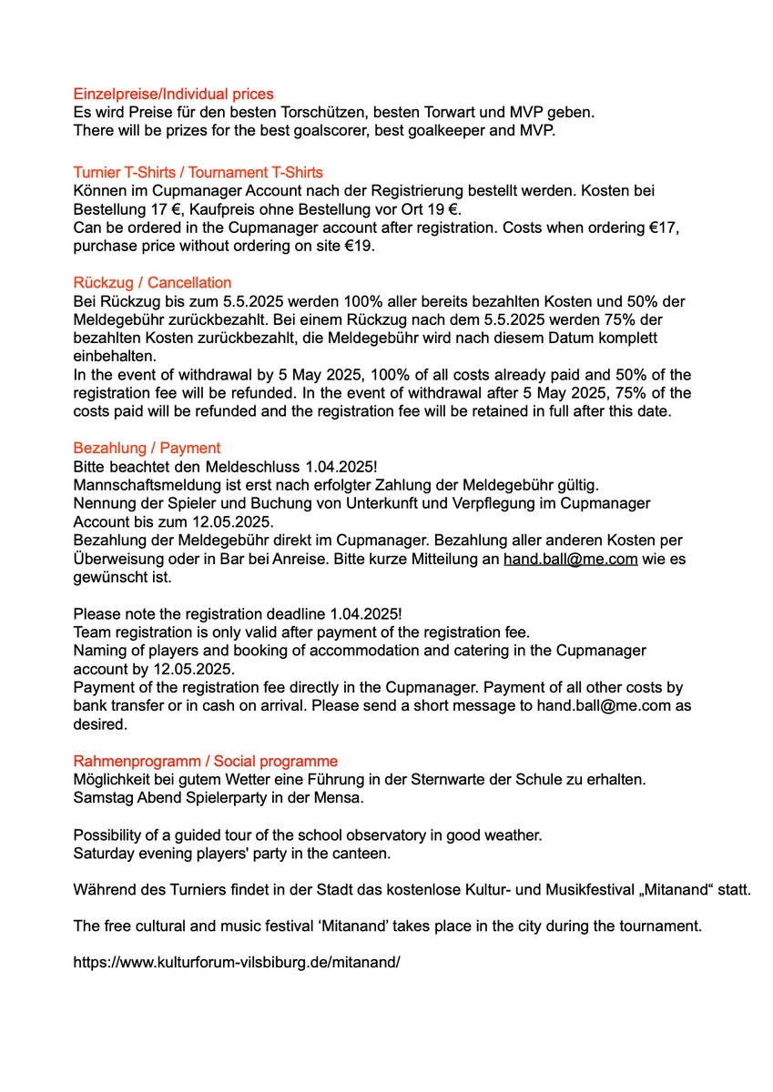 Wir möchten herzlich zum zweiten internationalen Jugendturnier in Vilsbiburg/Bayern am Pfingstwochenende 2025 ein,aden.
