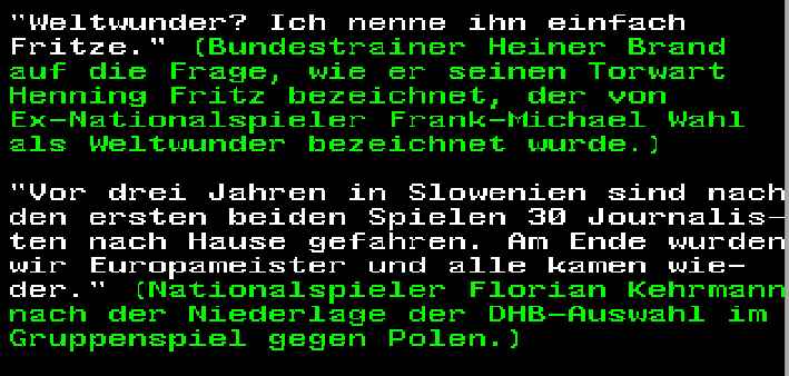 sonst war dies nicht der fall, selbst beim EM-Triumph, oder beim WM-Vize 2003
